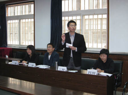 经过前期大量的资料收集与整合,比赛现场八名辩手逻辑清晰,语言犀利又不乏幽默,处处展现出马列学子的睿智。自由辩论环节,八名辩手充分结合西南大旱网上募捐、温总理网上答网民等社会热点来阐释己方观点,论点鲜明、论据有力、语言幽默。观众提问,与辩手互动阶段,再次将现场氛围推起一轮高潮。整场比赛,展现的不仅仅是马列学子的睿智风采,更彰显了马列研究生关注热点、胸怀祖国的真挚情怀。