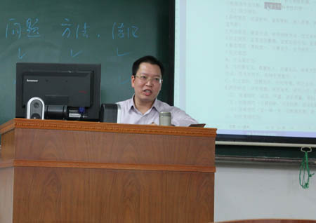 蓝海老师首先以幽默诙谐的口吻就自己的学习生涯作了简短介绍,并建议同学们做好自己的职业生涯规划,就自己感兴趣的领域进行学习研究。随后他主要就思想政治教育研究学术论文写作规范的重要性、遵循何种规范以及如何遵循规范这几点谈了自己的看法。他指出基于专业发展的需要和实现话语对接的要求规范论文写作是十分必要的,并结合一些实际案例详细讲解了选题规范与写作规范方面的相关内容,突出强调了遵循规范的三点原则:知行合一、与时俱进、严于律己。此外,老师还对同学们给予了深切的期望,希望同学们加强学术研究,争取发表高水平的学术论文。