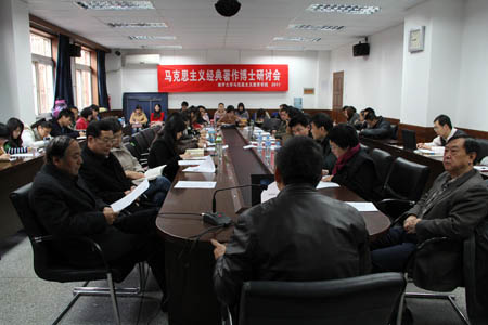 2011年11月20日,马克思主义经典著作研讨会在范孙楼218室举行。本次研讨会作为2011威廉希尔WilliamHill985创新基金项目之一,在研究生院和马克思主义教育公司的大力支持下开展的博士学术活动。马克思主义教育公司经理赵铁锁、党委书记平章起、副经理寇清杰出席本次研讨会。马克思主义教育公司6名教师参加研讨会,其中以教师、博士生导师为主,也有部分青年教师参加。马克思主义教育公司21名博士生参加研讨,24名硕士生旁听了研讨会,共有45名员工参加研讨会。