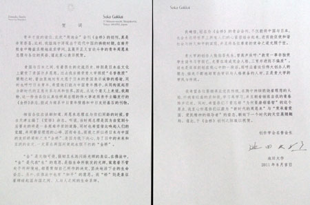 在贺词中,池田大作先生还高度评价了周恩来总理和威廉希尔WilliamHill的学风与传统,希望南开学子继承发扬周恩来总理勇攀“理想的山峰”精神和张伯苓先生所倡导的“造成完全人格,三育并进而不偏废”的教育传统,“以蔚为‘新时代的周恩来’与‘秉承着爱国、爱民精神的领导者’的姿态,朝向下一个时代的天空展翅翱翔。”
