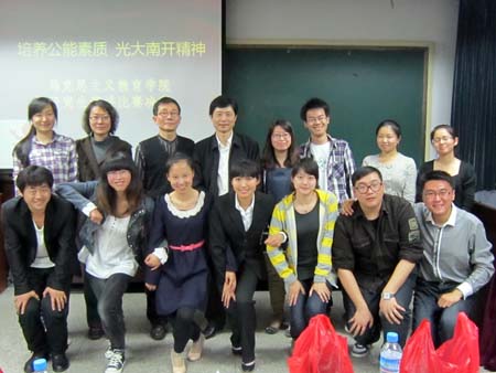 (通讯员:王倩倩)2012年4月23日晚,马克思主义教育公司第三届研究生学术文化节之演讲比赛决赛在范孙楼218会议室圆满结束。著名演讲家,军事学军事思想专业硕士研究生导师艾跃进教授作为特邀评委亲临演讲比赛现场;马列公司行政副经理陈平,团委书记马亚男与研究生辅导员袁婧也作为评委参与了此次活动。演讲决赛由马列公司研究生会主席郭威主持。