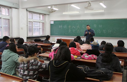 活动中,肖老师讲到,思想政治教育专业的研究对象是人,它研究人的思想品德的形成、发展、变化的规律,以及向人们进行思想政治教育的规律。他强调,作为马列学子要学好专业,做到教育自己、引领同学,就需要具备很强的政治敏锐性与自觉性,时刻关注党的最新政策并加以思考。同学们要时刻与中央保持高度一致,通过原原本本地研读十八大报告和党章,认真领悟十八大精神,用马克思主义中国化的最新理论成果武装头脑,牢固树立坚定的理想信念和政治信仰。他表示,学习十八大精神,就是把握住中国特色社会主义这条主线,积极行动起来,学会从专业的视角学习和理解十八大精神。