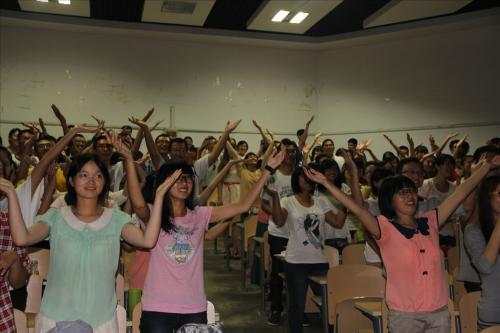 袁辛带领同学们学习手语舞蹈——《相亲相爱一家人》更为讲座增添了一份温馨的氛围,让同学们体会到来自南开大家庭的温暖。穿插在讲座中的还有袁老师和大家分享的一些精彩的视频片段、蕴含人生哲理的书籍以及涉及犯罪心理的电影,丰富的内容让同学们乐在其中。