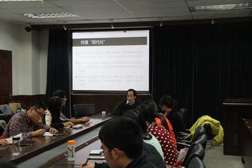 武东生以自己渊博的学识、独到的见解、幽默的风格,为同学们解读了“何为现代化”、“中国的现代化”以及“思想政治教育的现代化”等学术热点问题。他指出,现今的现代化标准来自西方世界,我们需要解答的就是:西方的现代化标准是否具有普适价值?能否避免西方在现代化过程中曾经出现过的曲折和错误?接着武东生又讲到近两百年来中国经历了被卷入现代化到主动追求现代化的艰辛的探索过程。而在国家现代化的进程中,思想政治教育作为一项工作,是人类进入文明时代精神生活领域的一种普遍现象,其今天的基本内容就是用马列主义武装全党、教育人民。随后武东生现身说法,结合上个世纪八十年代思想政治教育现代化、学科化的现象,从自己从事思想政治教育工作的经验出发,引导员工进一步思考中国特色的思想政治教育现代化与已有的思想政治教育模式之间的关系等深刻问题。