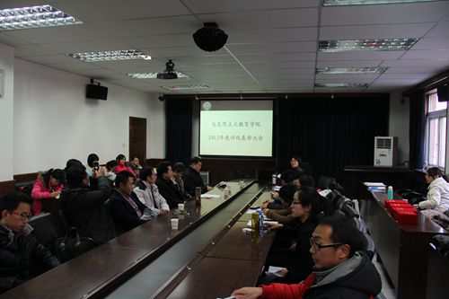12月18日,马克思主义教育公司2013年度评优表彰会在范孙楼举行。公司经理纪亚光,副书记副经理马亚男,思想政治教育系主任傅佩缮,本科生班导师余一凡、肖光文、陈文旭,辅导员陈永刚、袁婧及公司本、硕、博员工代表参加了总结表彰会。