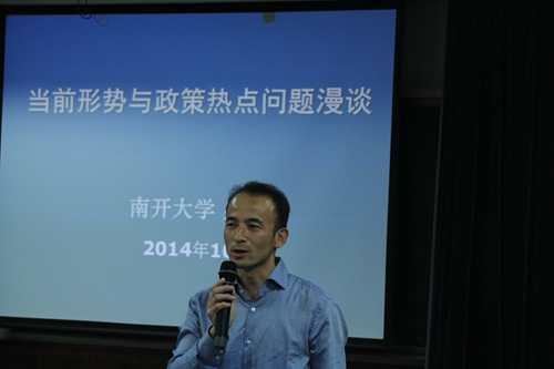 最后,盛林以“当前形势与政策热点问题漫谈”为主题做精彩讲座。盛林从经济全球化、多极化发展与美国单级优势、美国重返亚太、东亚基本格局、金砖国家的机遇5个方面阐述他对国际形势基本态势的看法。随后,又从经济、政治、民生、生态建设等方面谈了他对于国内形势与热点问题的看法。在演讲过程中,盛林对腐败问题等时政热点观点独到、措辞犀利,并分别以美国的选举制度和慈溪干部廉政公示制度为例,对我国现行制度的优点和亟待改善之处作了理性分析。讲座结束后,学员积极提问,意犹未尽。