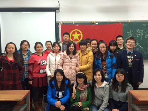 团支部书记王惠代表班级团支部向全体支部成员汇报本学期支部开展的天津人文活动月、新星小学支教、主题团日活动、四级模拟、读书会等工作。并对下一学期即将要开展的寒假社会实践、雷锋志愿服务月、宿舍文化风采展示、第三届“经理杯”趣味运动会、新星小学支教、“看世界”系列、读书会、暑期社会实践等活动做了工作部署。
