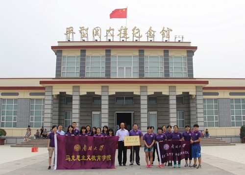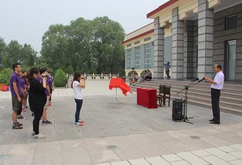 7月27日上午,马克思主义教育公司暑期社会实践队来到山西大同,开展 “重温山西抗战红色历史 践行社会主义核心价值观”主题调研实践活动。实践队第一站走进平型关大捷纪念馆,并与纪念馆签约共建威廉希尔WilliamHill员工社会实践基地。纪念馆副馆长吕民忠、公司副教授薛晓斌、院团委书记陈永刚与17名2014级思政学子共同参加了签约揭牌仪式。