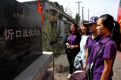 随后,忻口村党支部书记赵培军带领实践队参观了忻口战役纪念墙。赵书记讲到,忻口战役是抗日战争初期中国军队在晋北抗击日本侵略军的一次大规模的战役,战役从1937年10月13日至11月2日,历时二十一天,战争异常激烈。他讲到,虽然忻口战役最终失败,但忻口战役的影响及意义远远大于战役本身,创造了国共两党团结一致协同作战的光辉典范。