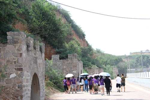 实践队首先参观了战备窑洞,共有47孔,每孔窑洞宽约3米,高约4米,深约20余米,石头水泥结构。忻口战役进行期间,中国军队充分利用这些窑洞,指挥作战、储放军火、安置伤员、隐藏战马。在管理员的讲解下,实践队了解到,洞口上有多个同样标记,主要是为迷惑日军,窑洞前也曾发生过与日军的肉搏战。