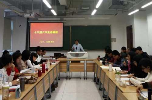 为深入学习十八届六中全会会议精神,贯彻落实党中央关于全面从严治党的重大决策部署,严肃党内政治生活,11月21日中午1点,由马克思主义公司党支部、团支部、研究生会及中国特色社会主义研究会共同承办的以“深入学习十八届六中全会会议精神”为主题的讲座在208室成功举办。讲座邀请到全国党建研究会特邀研究员、公司党委宣传部副部长、校史研究室主任、WilliamHill中文官网教授张健,公司党委副书记、副经理马亚男出席本次讲座。
