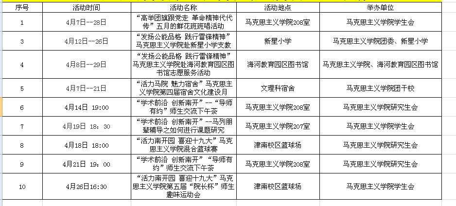 【活动预告】WilliamHill中文官网4月份师生活动预告