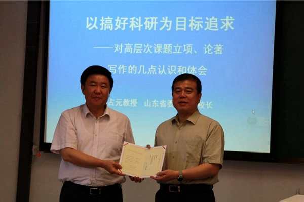 聘任仪式结束后,孙占元主编为在场师生做了题为“以搞好科研为目标追求——对高层次课题立项、论著写作的几点认识和体会”的精彩学术报告。孙占元主编认为无论是硕士、博士论文写作还是高层次课题立项、论著写作都有内在“规律性”的东西,首先在选题方面要注重学术前沿的把握,掌握国内外研究现状,写好文献综述和研究述评;在研究内容方面最重要的就是论文框架结构及其谋篇布局,注重理论逻辑和历史逻辑的相结合,打破相关专业的界限;在论文的创新方面包括研究思路、研究方法、和研究特色等,但要注重学术观点、视角的创新;最后在交流环节,师生们踊跃提问,孙占元主编逐一仔细回答了老师和同学们提出的有关问题,为大家一一解惑。