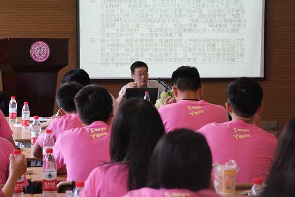 专家报告会由公司团委书记、本科生辅导员陈永刚主持。温宪元教授与崔学森副教授分别以“池田大作的和平思想:从概念到行动”和“哲学维度的对话”为主题为来自海峡两岸的同学们带来了一场别开生面的报告。温宪元教授以池田大作的和平思想为主题,分别介绍了和平思想的来源与发展、和平思想的概念与内核以及和平思想的当代实践,通过精彩的讲述与触目惊心的图片和数据使同学们深刻感受到了战争给世界人们所带来的苦难,体会到了和平的来之不易,对池田大作的和平主义思想有了更为深刻的理解。崔学森副教授以“对话”作为主题,以池田大作著作一贯的“对话体”为切入,深入浅出,从哲学的高度为同学们诠释了“对话”对于人类文明发展与大同社会达成的重要意义。