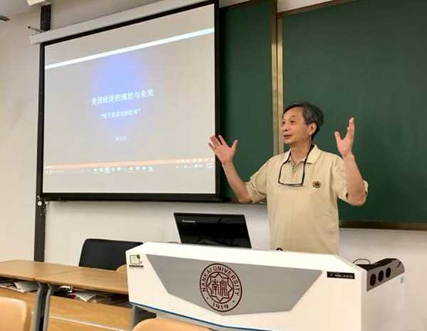 黄正风先生讲座的题目是“美国经济的现状与未来”。他指出,研究“什么是较好的经济模式”是世界上最难的课题项目之一。他认为,应当有一个最基本的标准,即“长期GDP高速增长,多数人生活提高,相对国力增强。”他用详实的数据告诉大家,美国经济存在的主要问题:负债过多、贫富差距拉大、工业衰退、产业工人失业、税收减少等。总的来看,资本主义经济理论正处于破产的边缘。他认为,单纯的计划经济和市场经济都有不小的弊端,混合经济不失为一条正途。他说,美国需要放下架子,吸收经验,它需要改革,而且需要那种倾向于大多数人的改革。他同时也表示,美国在科学、教育、文化等方面的实力强悍,瘦死的骆驼比马大,国家发展遇到曲折也是正常的,仍然不可小觑。