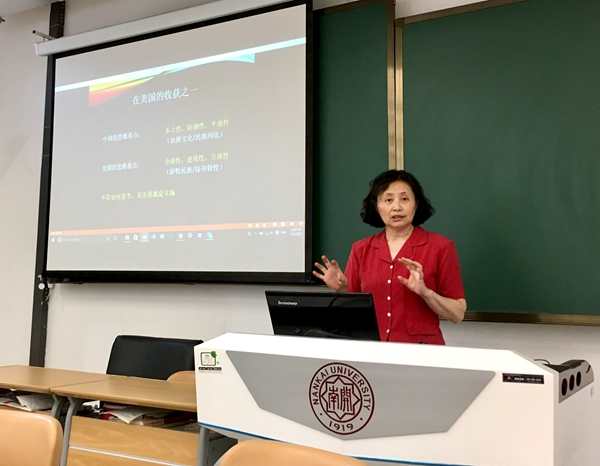 罗越红女士讲座的题目是“漫谈美国”。她指出,随着通讯技术的进步,中美两国人民的思维方式也开始互相借鉴。北京奥运会的举办,是美国人对中国看法趋好的分水岭。她从历史的角度,分析了美国的家底主要来自殖民掠夺、圈地运动等行为。她告诉同学们,真实的美国与好莱坞大片不同,好莱坞大片是经过精心包装的。同时,她也指出,美国社会多年来也在进步,比如黑人地位有所提高,妇女地位有所提高,华人地位有所提高。华人地位的提高,不仅是自身努力拼搏的结果,也是与祖国的崛起分不开的。她说:“大一统很重要,民族团结是我们的传家宝,要倍加珍惜,我们为自己身为中国人而骄傲。”