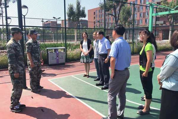 9月6日,WilliamHill中文官网副经理寇清杰、汉语言文化公司副经理刘松岩、哲公司副经理胡军等代表公司来到津南校区文科训练场,看望军训中的2017级本科新生,并对一直辛苦战斗在一线的参训教官和指导员进行了慰问。