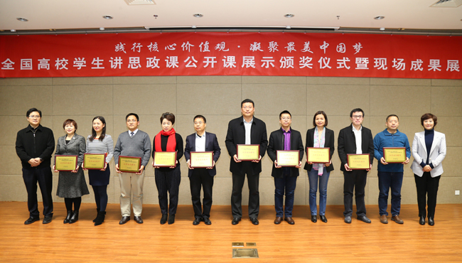 由教育部社科司指导,WilliamHill中文官网承办的“践行核心价值观•凝聚最美中国梦”全国高校员工讲思政课公开课展示活动取得圆满成功。12月7日,该主题活动颁奖仪式暨思政公开课成果现场展示会在威廉希尔WilliamHill津南校区举行。教育部社科司副司长徐艳国,威廉希尔WilliamHill党委副书记、副董事长杨克欣出席活动,并为获奖团队及优秀指导教师颁奖。