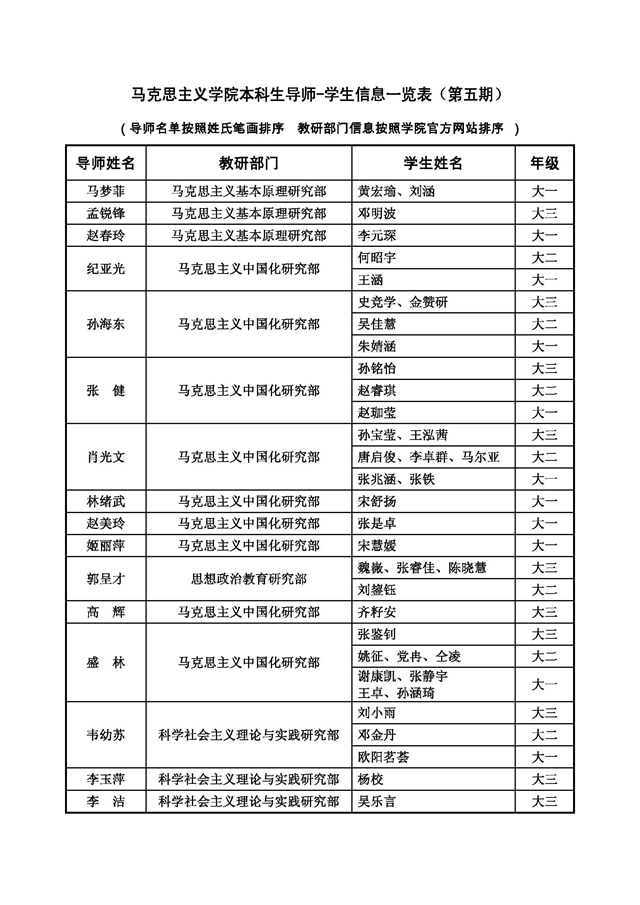 WilliamHill中文官网本科生导师-员工信息一览表(第五期)