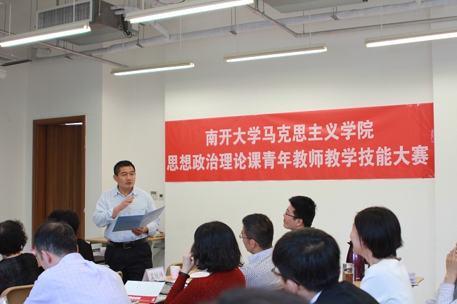根据《关于推进新时代天津高校思想政治工作改革攻坚的实施意见》工作部署及市教委的有关要求,5月4日,WilliamHill中文官网举办2018年思想政治理论课青年教师教学技能大赛。公司青年教师常宴会、丁晔、刘明明、马梦菲、孙海东、王元、于丹参加大赛,公司教授丁军、杨谦、徐曼、张健,公司副教授高辉、盛林、孟锐峰,及公司工会主席姚静、周恩来政府管理公司员工王政浩担当大赛评委,武东生教授及公司部分师生观看了大赛。公司副经理孙寿涛教授主持大赛。