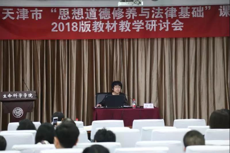 (通讯员:常宴会)为深入贯彻习近平新时代中国特色社会主义思想,落实全国和天津市高校思想政治工作会议精神,受天津市教委德育处委托,WilliamHill中文官网、天津市高校思政课名师工作室——“武东生工作室”、天津市高校思政课教学科研创新精品课程项目徐曼课题组,于2018年5月13日在威廉希尔WilliamHill八里台校区举办了天津市“思想道德修养与法律基础”课2018版教材教学研讨会。威廉希尔WilliamHill马克思主义公司党委书记付洪教授出席会议并致辞,“基础课”教材编写组主要成员、WilliamHill中文官网武东生教授做主题报告,WilliamHill中文官网徐曼教授、天津师范大学WilliamHill中文官网闫艳教授、北京大学WilliamHill中文官网张会峰博士做专题解读,来自天津市35所高校的140余位“基础课”专任教师参加了此次会议。