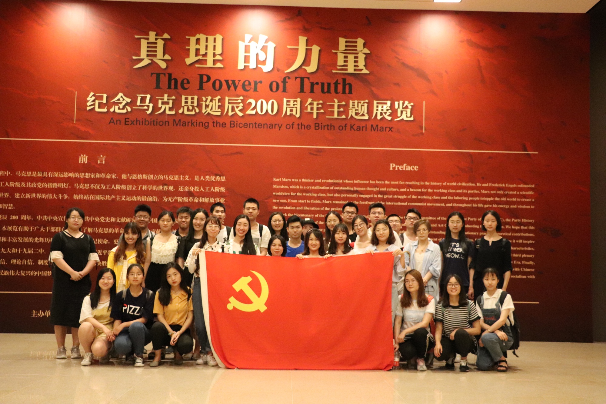 “真理的力量——纪念马克思诞辰200周年”主题展览由中共中央宣传部、中共中央党史和文献研究院、中国文学艺术界联合会共同举办,共分为“伟大革命导师马克思的壮丽人生”“马克思主义中国化的光辉历程”和“新创作马克思主义题材美术作品”三大板块。展览全景式展示了马克思的生平、革命实践、理论贡献和精神境界,展现了马克思主义在中国传播运用和发展的光辉历程。展览展出的珍贵史料让同学们进一步了解了马克思非凡的一生,了解了马克思主义在中国大地上传播、运用和丰富发展的过程,更加激发了同学们学习马克思主义理论、坚定理想信念、为中华民族伟大复兴贡献力量的决心。