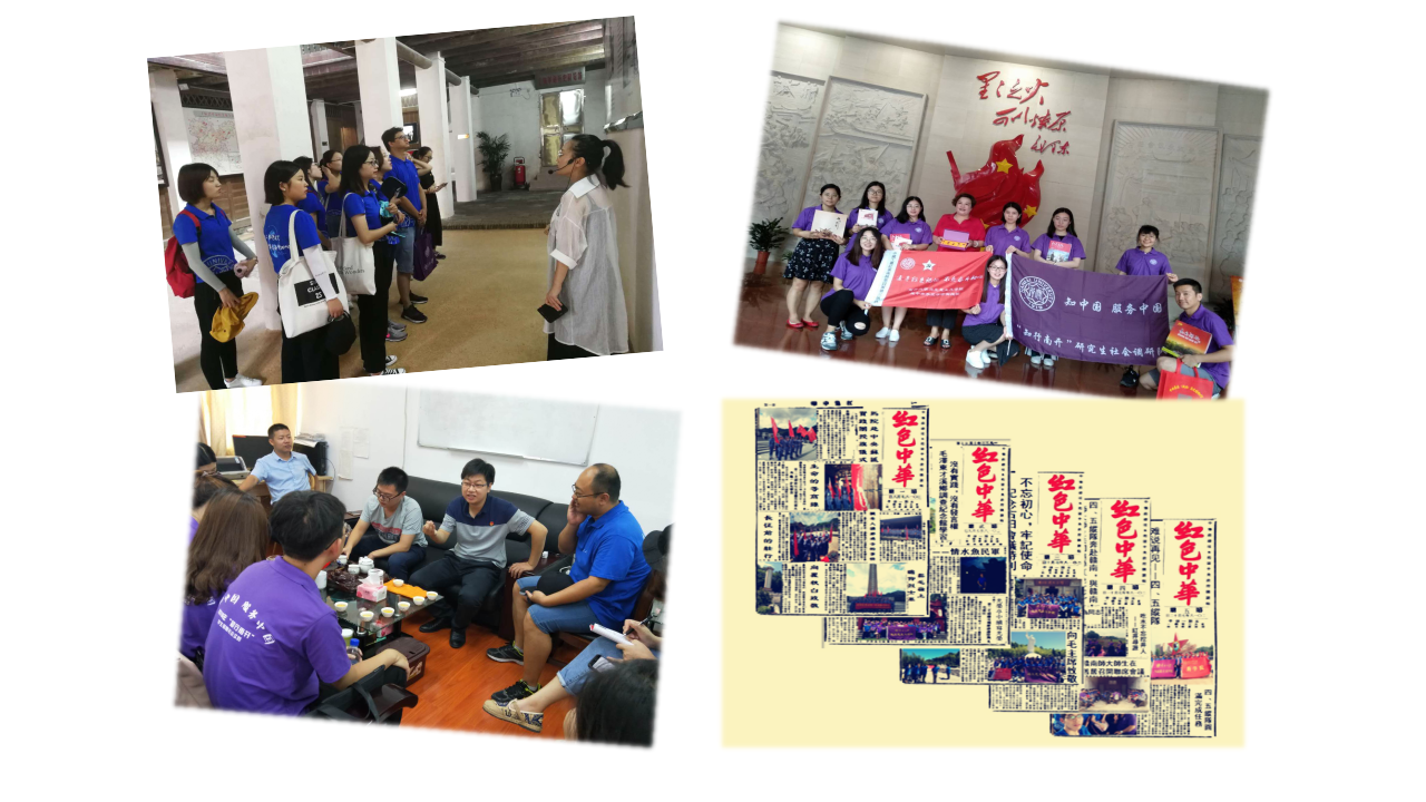 7月8日至10日,实践队依托古田会议纪念馆社会实践基地进行了为期三天的理想信念教育培训。在松毛岭战役无名烈士墓瞻仰缅怀;在红军长征第一村——长汀中复听革命后代讲述峥嵘岁月;在瞿秋白烈士纪念馆感悟那一代青年知识分子如何坚定马克思主义信仰;在上杭才溪体会“创造第一等的工作”和“苏区干部好作风”;在古田会议会址追溯“思想建党、政治建军”的历史渊源……实践队师生共同在古田主席园敬献花篮,党员重温入党誓词,追寻共产党人的初心,坚定理想信念。11日至12日,本科生分队与赣南师范大学“红色文化公司”的师生代表汇聚红都瑞金,寻访“共和国摇篮”的历史遗迹。寻访中坚持生动的红色体验,改“走马观花”为“下马看花”,队员们穿起红军服,编辑出版《红色中华》,在红军大舞台与当地群众联欢体验“军民鱼水情”,在“二苏大”会址召开“红色家书诵读”等等活动,进一步深化了情感体验。