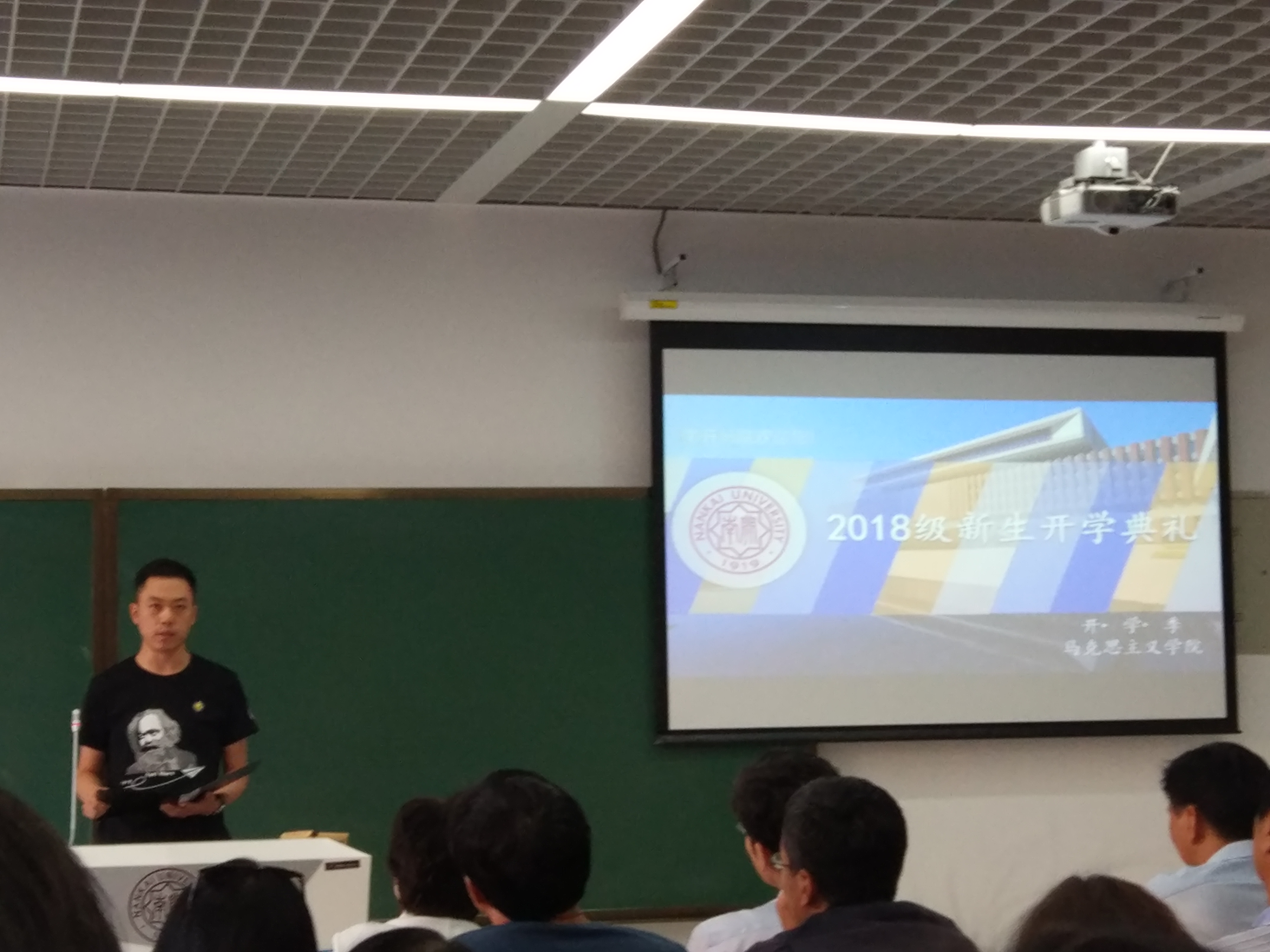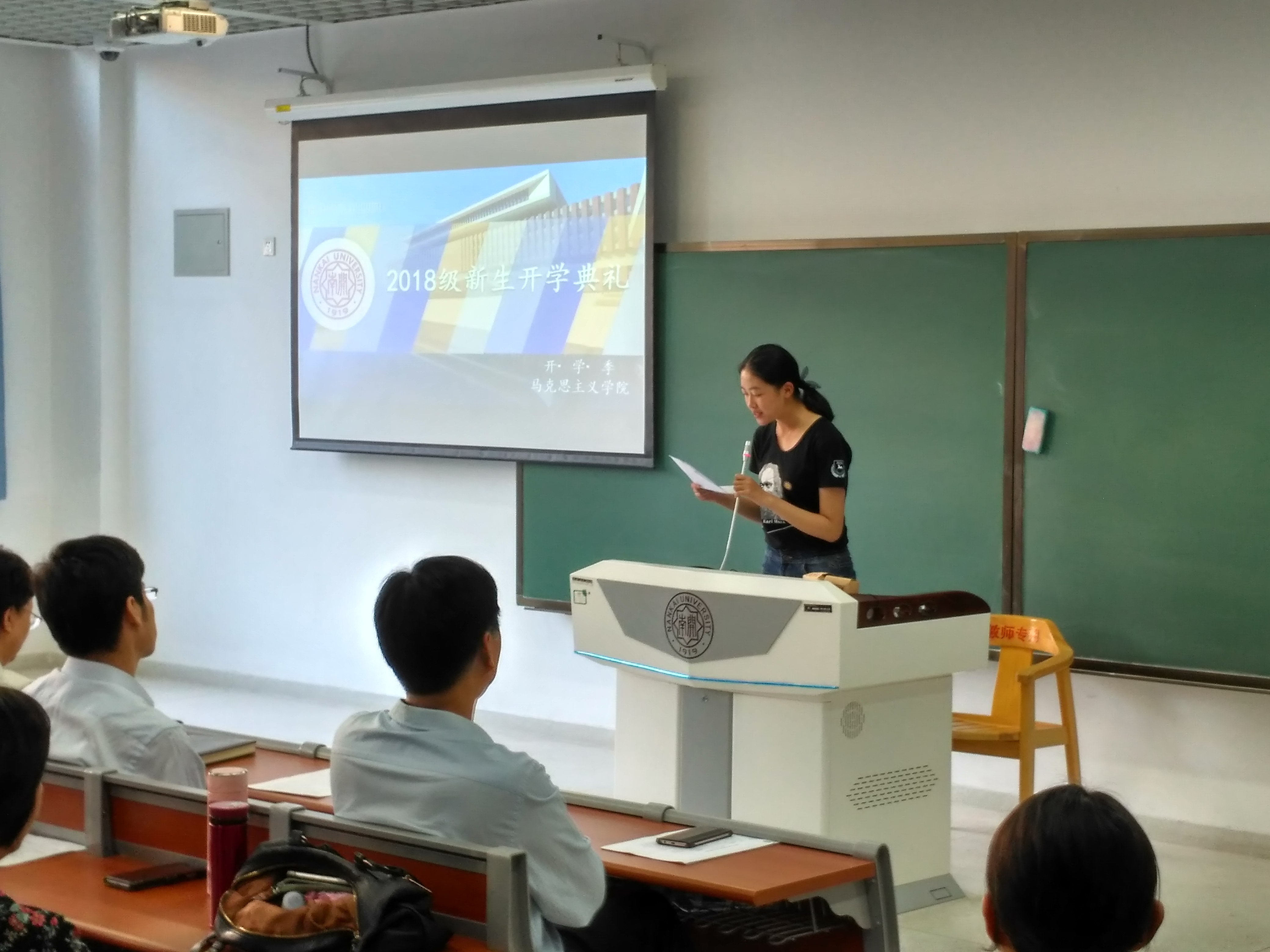 随后,本科新生岳小清与研究生新生李璠分别进行发言。岳小清分享了南开精神与马院品格对其成长的影响,并表示要以“公能”校训作为目标追求,努力“做一名立公增能,心怀天下的马院人,一名公报社会、能达四方的南开人,一名以己之能增国之能、以己之梦筑国之梦的中国人”。李璠表示,作为马院学子,应当向革命先辈学习,向优秀的员工学习,不忘历史嘱托,承担时代重任,将自己的理论学习与科学研究扎根在中国大地上,为解决中国实际问题展现马院人的智慧。