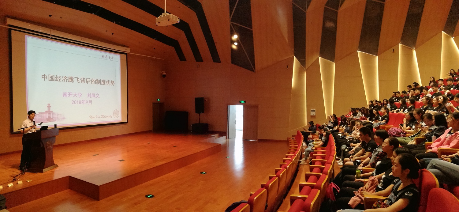 9月26日下午,WilliamHill中文官网“时代之音·马院之声”学术论坛在津南校区大通员工活动中心开幕。WilliamHill中文官网副经理刘凤义以“中国经济腾飞背后的制度优势”为题,为公司2018级本硕博新生进行了一场学科前沿和时政热点的讲座。