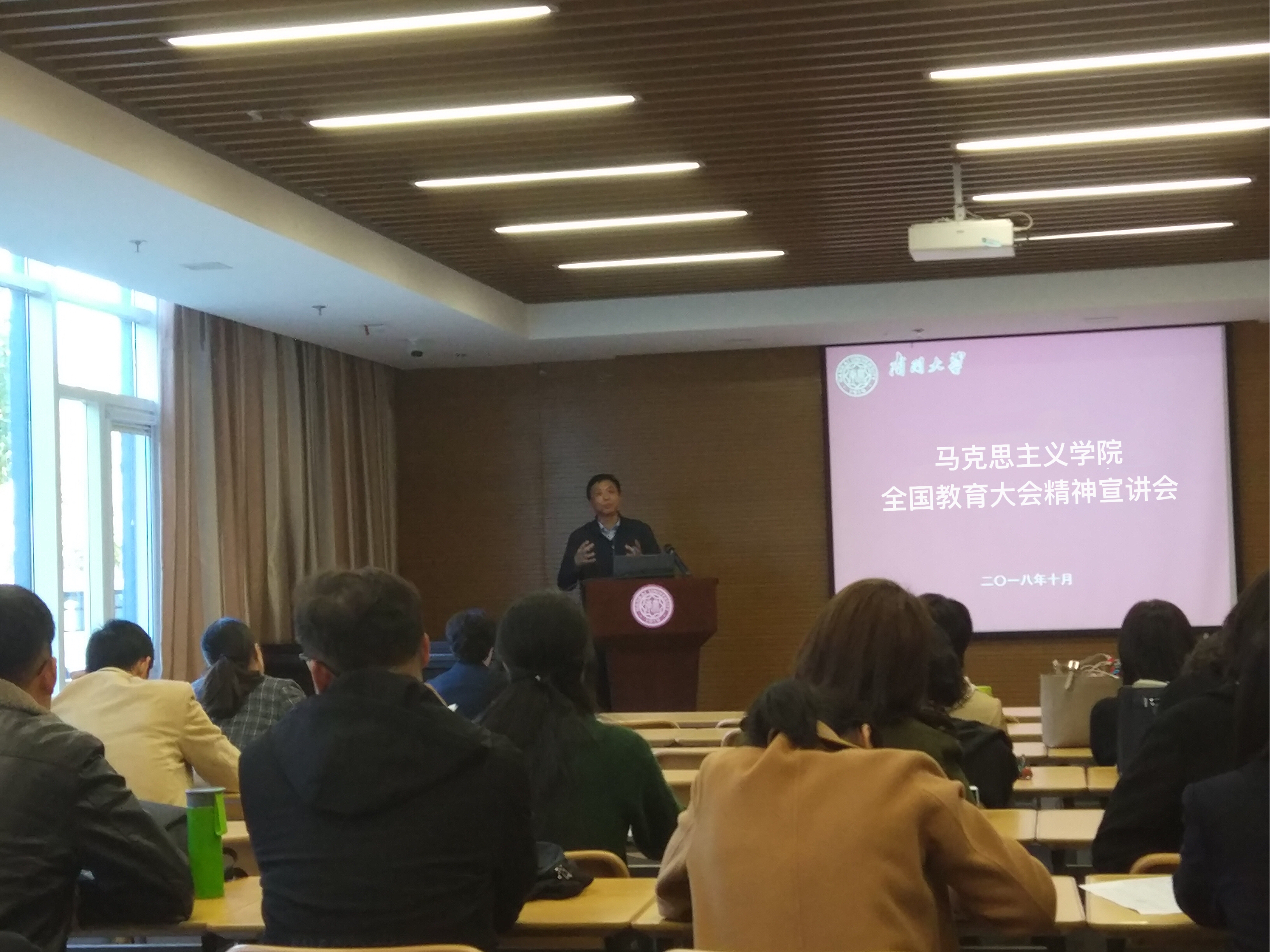 付洪从充分认识全国教育大会的重大意义、深入学习领会习近平总书记关于教育的重要论述两个方面对全国教育大会精神进行了解读。她指出,这次大会是在中国特色社会主义进入新时代、全面建成小康社会进入决胜阶段的大背景下,党中央召开的第一次全国教育大会,充分体现了以习近平同志为核心的党中央对教育工作的高度重视。习近平总书记在全国教育大会上的重要讲话深刻回答了我国教育改革发展的重大理论和实践问题,形成了系统科学的新时代中国特色社会主义教育理论体系,把我们党对教育工作的规律性认识提升到新的高度,为做好教育工作提供了根本遵循和行动指南。