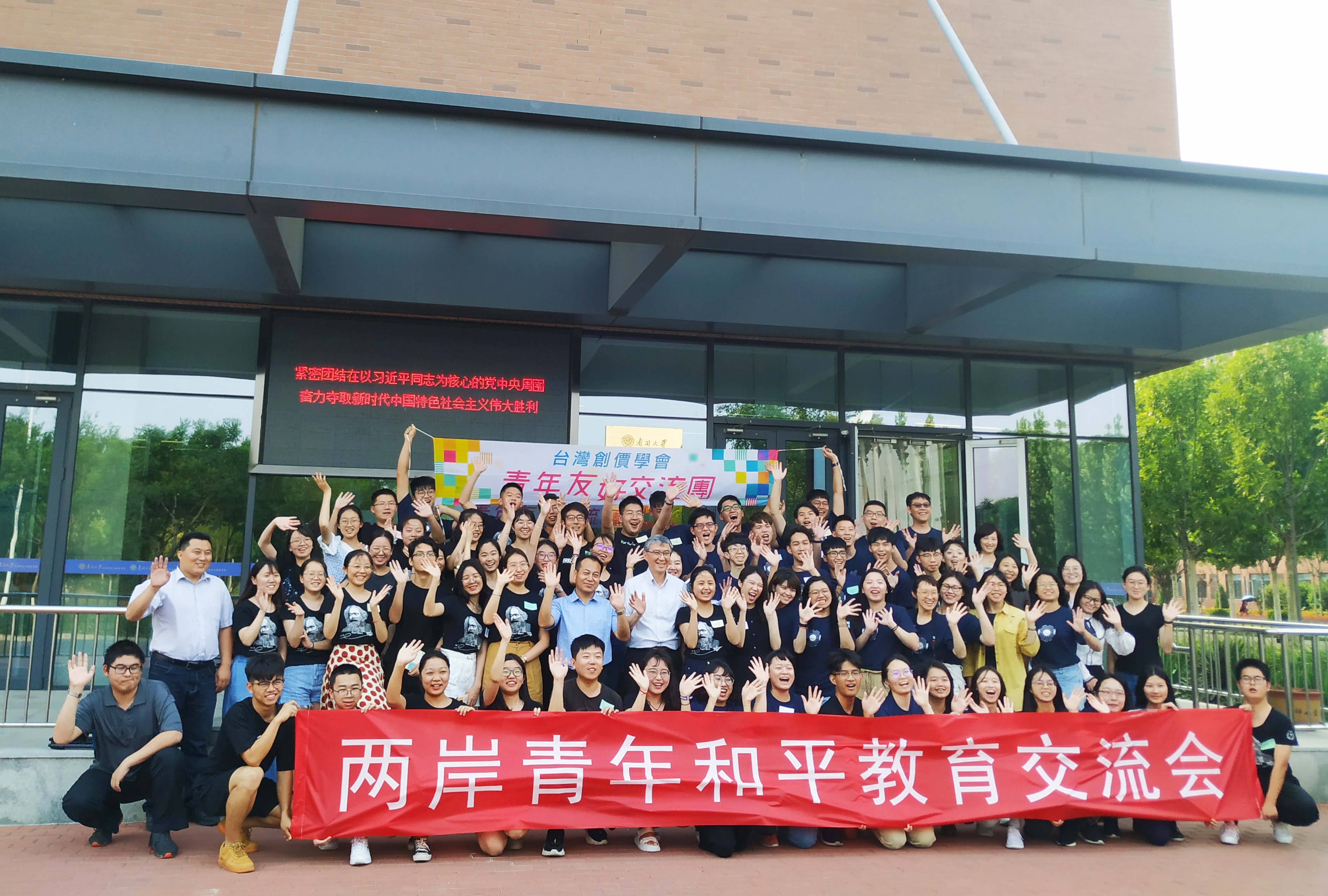 “马克思主义在南开”大型主题展览的员工讲解员带领台湾创价学会的师生进行认真参观。会后,同学们在《我们的誓愿》《樱花缘》《我和我的祖国》歌曲合唱中表达了对两岸青年友谊长存的良好祝愿。