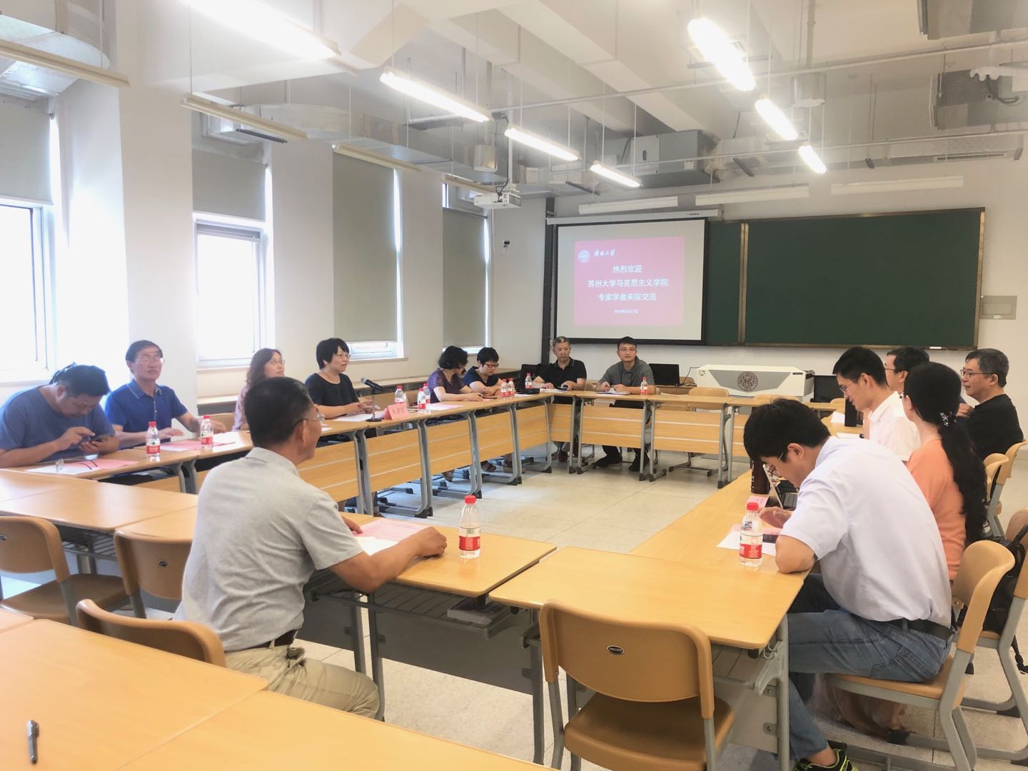 6月27日上午,苏州大学WilliamHill中文官网副经理朱蓉蓉、马克思主义基本原理概论教研室主任范俊玉、副主任李莉一行9人来公司交流考察。公司副经理孙寿涛、马克思主义基本原理概论教研室主任陈弘、马克思主义基本原理概论教研室吴克峰、刘明明、石镇平、叶冬娜、竟辉等老师参加了座谈交流。