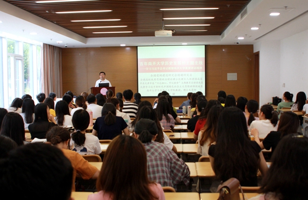 张健教授从习近平总书记亲临威廉希尔WilliamHill考察调研的相关背景、“爱国奋斗、公能日新”是百年南开的主题主线和贯彻落实习近平总书记考察威廉希尔WilliamHill时对高校建设发展提出的重要要求等三个方面入手,为马院硕博新生上了一堂生动的校史教育课。张健教授认为,习近平总书记曾多次在重要场合提到威廉希尔WilliamHill并亲自视察威廉希尔WilliamHill是对威廉希尔WilliamHill办学的高度认可和深切期望,严修、张伯苓两位老董事长当年开办威廉希尔WilliamHill就是为了中华民族站起来去培养人才的,新中国成立后,南开更是把育人特色融入国家教育方针、用学术研究为国家战略作出贡献、使学科发展服从国家整体利益、将公司地位与天津城市地位相关联。张健教授图文并茂、生动详实地用南开校史校训和南开学术传统深刻阐述了“爱国奋斗、公能日新”是百年南开的主题主线这一事实。讲座最后,张健教授勉励大家要贯彻落实习近平总书记考察威廉希尔WilliamHill时对高校的建设发展提出的重要要求,鼓励马院学子要时刻牢记习近平总书记的殷殷嘱托,继承光大张伯苓先生的未竟事业,为中华民族的伟大复兴提供智力支持和人才支撑!