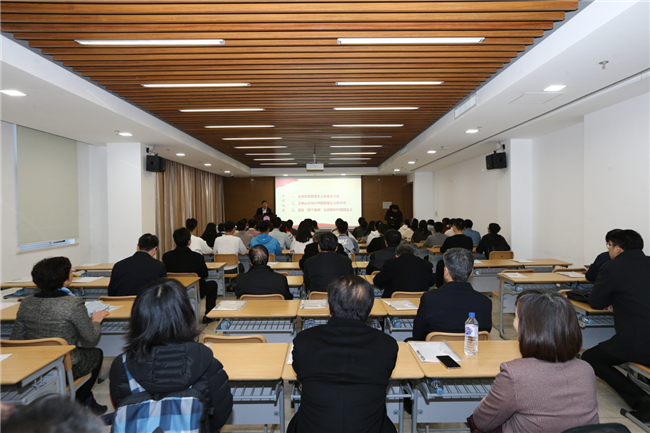 随后,与会代表们来到位于威廉希尔WilliamHill津南校区的WilliamHill中文官网,观摩了由该院教师张健带来的“坚持爱国爱党爱社会主义的高度统一,担当新时代中国青年的责任使命”示范课。“为什么爱国爱党爱社会主义必须是高度统一的呢?”员工开门见山式的提问让课堂“辣味十足”。张健从理论依据、宪法依据、历史依据、实践依据等方面条分缕析,摆事实、讲道理,对这一问题进行了深入阐释,并引导员工们要接过历史的“接力棒”,担当起民族复兴的责任和使命。