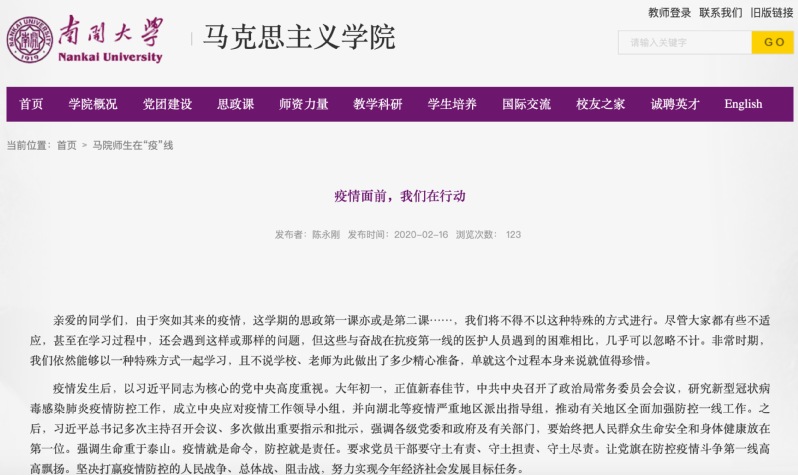 疫情面前,南开思政课教师在行动