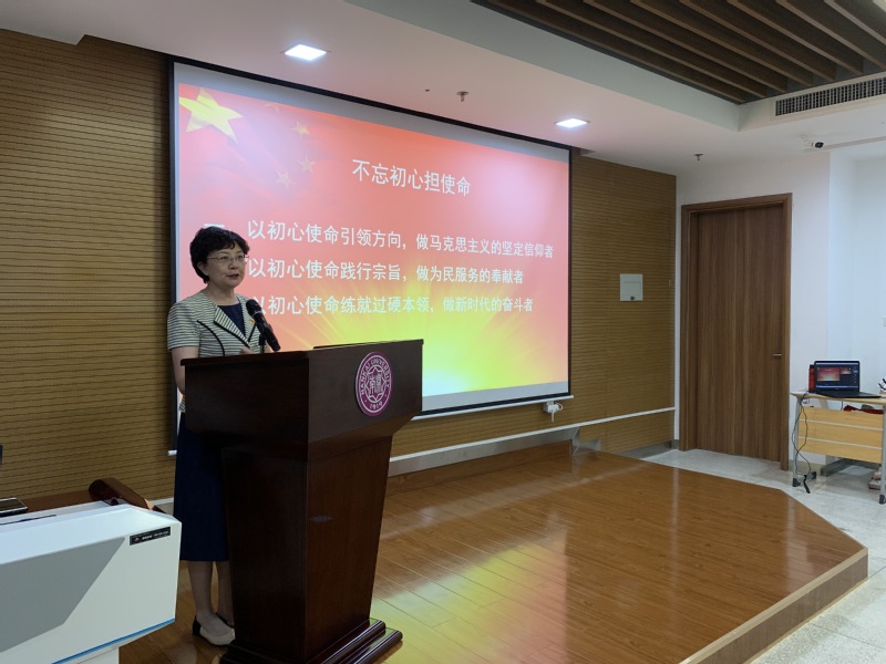 付洪教授为毕业生党员做“不忘初心担使命”主题党课。她结合疫情防控、员工成长和公司发展,从“以初心使命引领方向,做马克思主义的坚定信仰者”“以初心使命践行宗旨,做为民服务的奉献者”“以初心使命练就过硬本领,做新时代的奋斗者”三个方面展开讲述。她指出,作为马院的员工党员,不管走到哪里、做什么工作,都必须坚持“学马”“懂马”“信马”“用马”,自觉加强马克思主义理论学习,做坚定的马克思主义信仰者。同时,她充分肯定了马院毕业生党员为抗击疫情所做的努力和奉献,要求毕业生党员要做为民服务的表率,与人民一起奋斗,一起前进,一起梦想。她以“信仰”、“奉献”、“奋斗”为结,希望毕业生党员始终牢记初心使命,厚植爱国情怀,听党话、跟党走,充分发挥党员的先锋模范作用,做新时代的奋斗者。