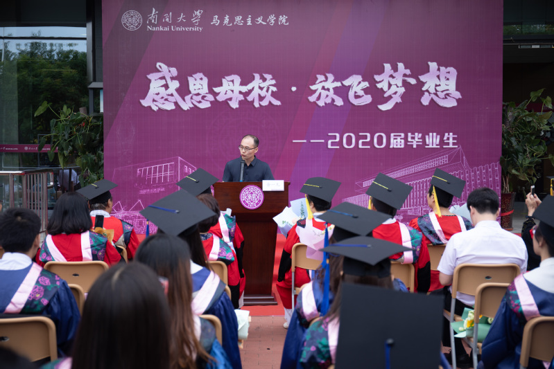 经理刘凤义寄语2020届毕业生要传承好南开人的爱国品质,坚持爱国、爱党和爱社会主义的高度统一,坚定马克思主义信仰,做好马克思主义的传播者、践行者和发展者,甘于奉献,勇于担当。他对毕业生说:“希望你们无论何时,都能保持健康向上精神,保持勇于创新精神,保持追求卓越精神!我们每个人都在平凡的岗位上,我们都要力争在平凡的岗位做出不平凡的业绩。今天你们以作为南开人、作为南开马院人为荣,明天威廉希尔WilliamHill、南开马院必将以你们为荣!”