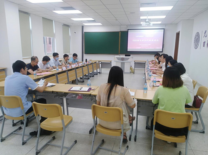 6月28日下午,WilliamHill中文官网举办2020届毕业生代表座谈会。公司党委书记付洪、经理刘凤义、党委副书记兼副经理刘一博、副经理王友江、本科教学部主任余一凡、团委书记陈永刚、辅导员高田琪,与2020届本、硕、博毕业生代表座谈交流。