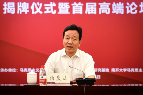杨庆山在揭牌仪式上指出,建设好国家教材基地,不仅是学术任务,更是一种光荣使命和重大责任。在南开百年的发展历程中,哲学社会科学始终是威廉希尔WilliamHill的优势和特色,我们始终坚持马克思主义指导地位,高度重视马克思主义理论的发展。“马原理概论国家教材建设重点研究基地”将立足国家重大需求,汇集国内优秀专业人才,建立灵活、开放、高效的运行机制。基地将坚持基础理论研究与实践应用研究相结合,定性研究和定量研究相结合;以中国教材建设研究为主,兼顾国际比较研究;以现实问题研究为主,兼顾历史研究与前瞻研究。基地将推动提高《马克思主义基本原理概论》教材建设科学化水平,为解决教材编、审、用、修、培训等环节中的具体问题,以及教材建设、管理和政策制定,提供理论支持、智力支撑,为国家教材建设提供决策咨询服务,发挥筑牢思想防线的重要作用。