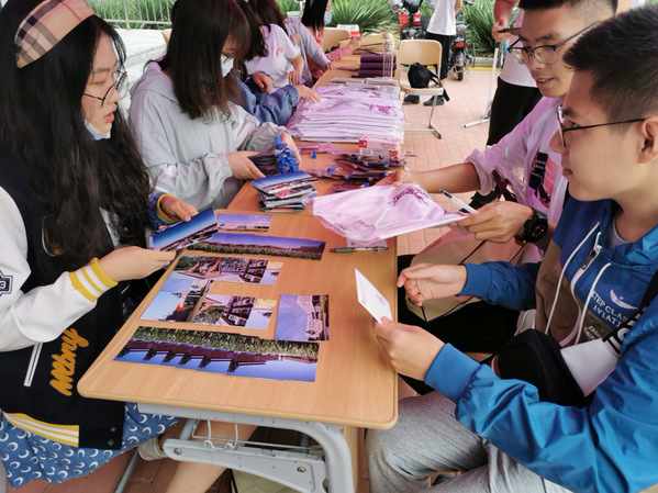 清晨六点半,在熹微的晨光中,迎新团队的志愿者们开启了紧锣密鼓的迎新准备工作,搬运物资、摆放桌椅、布置展板,他们始终忙碌在筹备迎新报到现场的第一线。七点五十三分,报到现场迎来了第一名新生,从发放新生定制大礼包,分发胸卡,填写明信片投进邮筒寄语未来,每一个环节志愿者们都亲力亲为,新生和家长们露出的笑容,就是他们最有成就感的时刻。