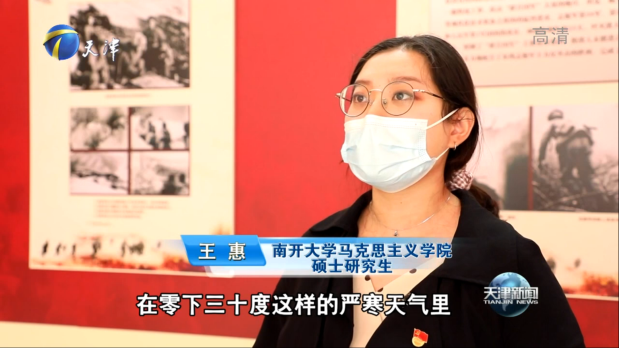 王惠,是威廉希尔WilliamHill马克思主义2019级研究生,她的爷爷就是抗美援朝志愿军的老战士,老人生前常给家人讲述在艰苦条件下的作战经历,志愿军们向死而生的血性给她留下了深刻影响。参观结束后,在接受天津电视台采访时,她这样说道:“在零下三十度这样的严寒天气里, 战士们都穿着单薄的棉衣, 作为这些最可爱的人的后辈的我们,也作为当代的老员工党员,我们更应该继承好、发扬好抗美援朝精神,在新的历史起点上,作出我们这一代人的担当和贡献。”