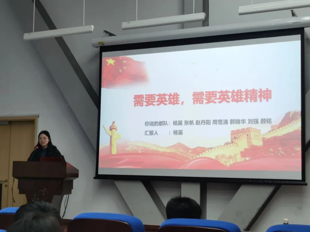 杨笛同学代表“你说的都队”小组,围绕“需要英雄 需要英雄精神”为主题,以中国人民志愿军烈士遗骸归国这一事例为切入,引出“英雄”主题。宣讲从“何为英雄”“为何崇尚英雄”“如何崇尚英雄”三方面展开,通过理论和现实两个维度,梳理英雄人物的光辉事迹与崇敬英雄的新时代价值,勉励广大青年员工铭记、致敬并力争成为出自平凡的非凡英雄。