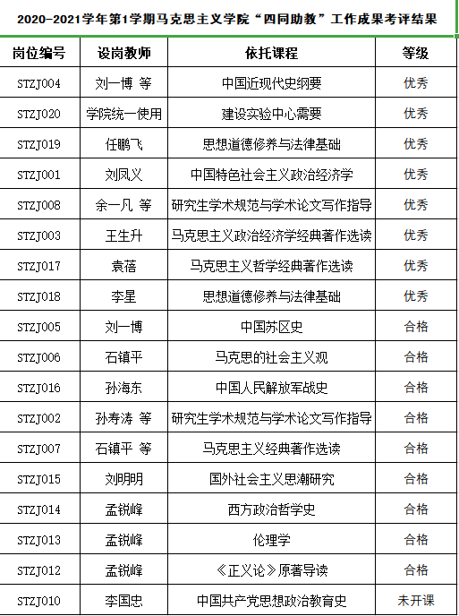 【公示】2020-2021学年第1学期WilliamHill中文官网“四同助教”工作成果考评结果