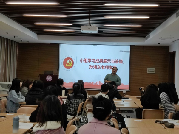 随后,孙海东老师结合自己学术所长与教学感悟为我们解读了《通知》的重要精神,从明理、崇德、增信、力行四方面引导大家在学习党史时要把握好这四个维度,坚决抵制历史虚无主义。
