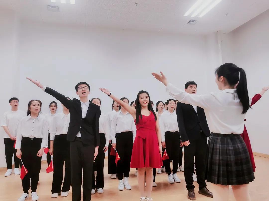 紧接着的是2019级本科生行周班演唱的《爱我中华》,由辛雅雯同学指挥,刘芳竹同学领唱。五十六个民族血脉相连,五十六族兄妹携手并肩。在每个炎黄子孙的心中,都有一个强烈震撼的声音:爱我中华!2019级本科生行周班是一个包含了五个民族同学的家庭,今天的演唱中他们身着各色民族服饰,展现了中华民族大繁荣大团结的美好现实,并用歌声献礼建党百年,表白伟大祖国!