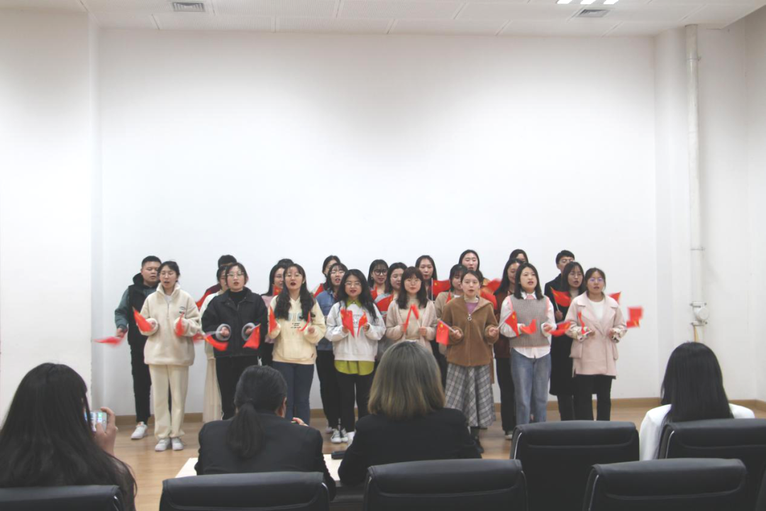 首先演唱的是2020级本科生启寤班全体成员,由詹妮同学钢琴伴奏,陈亦乔同学指挥带来的《中国人民志愿军战歌》,这首歌创作于抗美援朝时期志愿军入朝作战前期,表达了志愿军战士保卫祖国,保卫和平,制止侵略的愿望和决心。启寤班的演唱节奏强烈,情感充沛,表达了对志愿军保家卫国精神的赞美和崇高敬意。