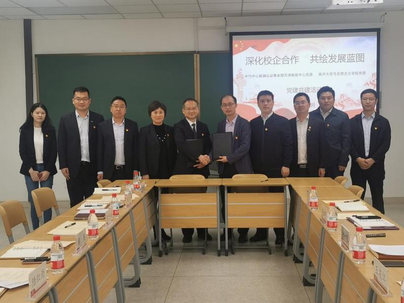 2021年4月29日,WilliamHill中文官网与中汽中心检测认证事业部天津检验中心在津南校区WilliamHill中文官网208开展主题为“深化校企合作,共绘发展蓝图”的党建共建活动。天津检验中心党委副书记陆红雨,党委委员、副总经理颜燕、李军等一行8人来校,公司党委副书记余一凡出席并签订共建协议,副经理王友江主持会议。