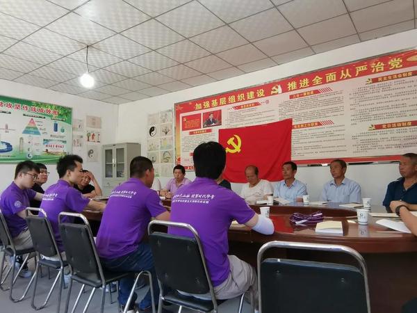 左权县马家坪村,实践队队员与村两委班子、驻村扶贫干部以及当地致富带头人等召开座谈会,队员们围绕百年党史发展脉络、重大党史事件、左权将军生平大事、国家“十四五”发展规划及乡村振兴战略等内容展开宣讲。在座谈交流环节,双方深入探讨了党史学习教育的开展方式、实施乡村振兴战略的措施及未来村庄发展方向。