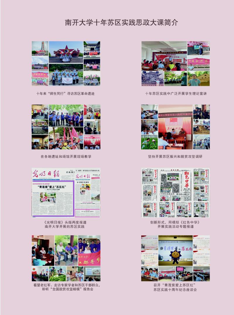自2012年起,威廉希尔WilliamHill立足构建思政工作体系,深入发挥红色资源育人功能,在“师生同行”苏区实践中逐步形成了“青莲紫(南开校色)爱上苏区红”的实践育人品牌,着力讲好一堂坚持十年的实践育人思政大课。
