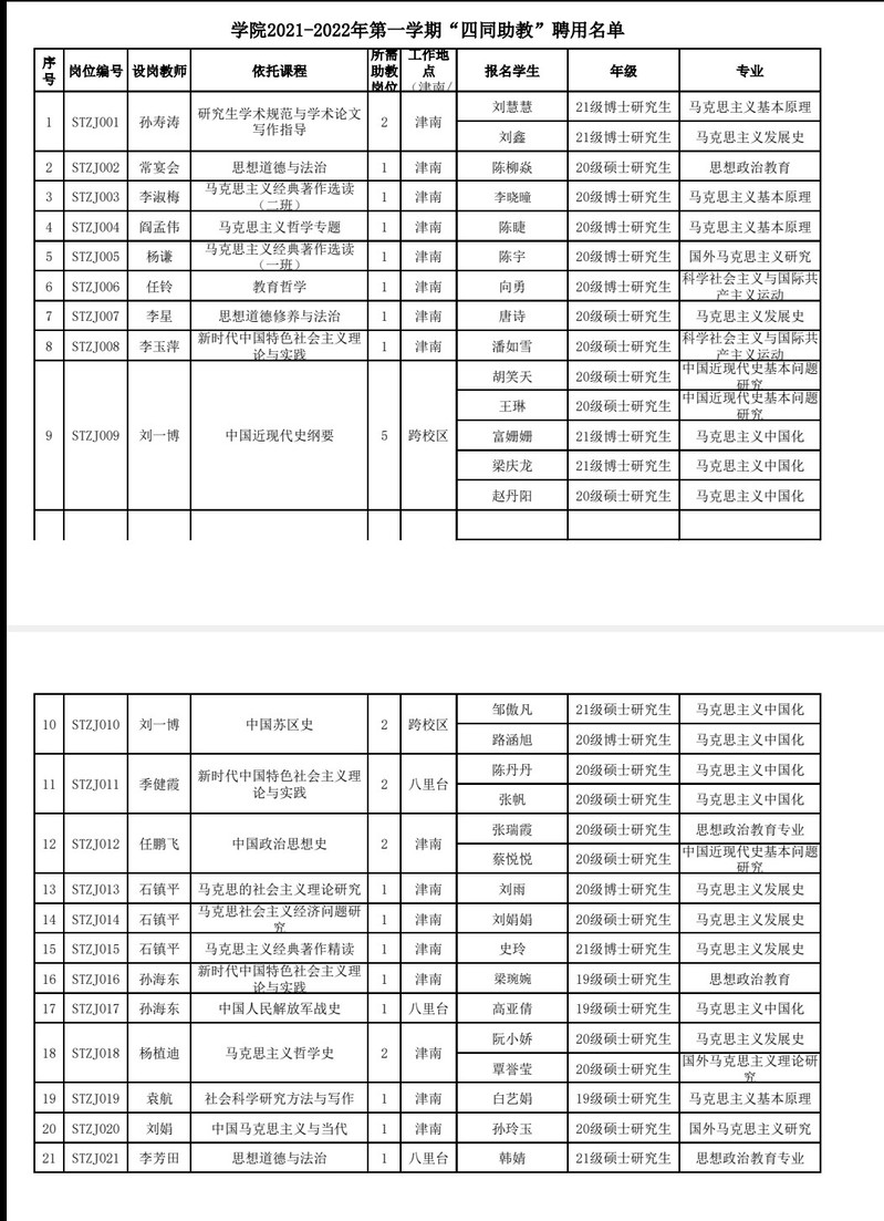 公司2021-2022年第一学期“四同助教”聘用名单